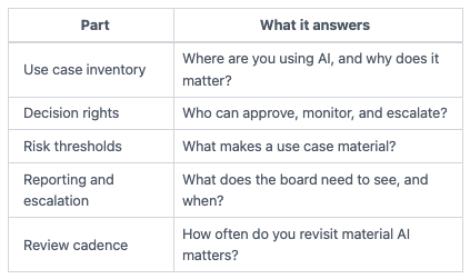 Not every AI use belongs in the boardroom. If you try to review every tool, you turn governance into delay.