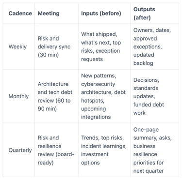The hardest part isn't designing the cadence as a formal governance framework. It's keeping it alive when things get busy.