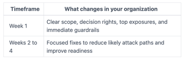 How do you measure success in 30 days? You should have a defensible top risk list, visible control improvements, and board-ready reporting. You should also have an incident readiness plan you've practiced, not just documented.