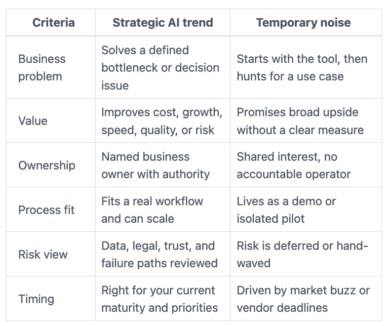 Not every fast-moving AI trend is strategic.