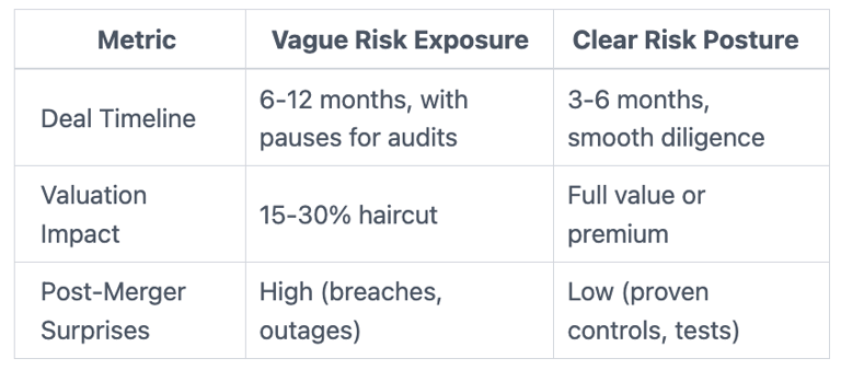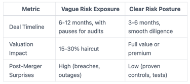 This is the invisible cost of vague risk. Buyers demand proof because post-deal surprises hit their balance sheets. Fuzzy cyber posture signals deeper issues like weak controls or unvetted vendors. You lose trust fast. Growth stalls. Board scrutiny rises.