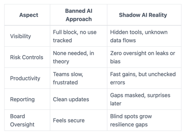 Contrast banned AI with shadow mess. This table shows the split: